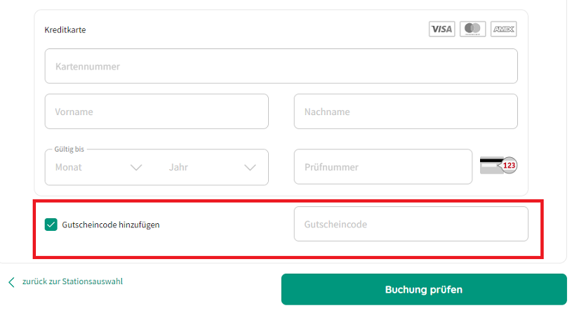 - Klicke auf “Buchung überprüfen” und der Rabatt wird automatisch von deinem Gesamtbetrag abgezogen.