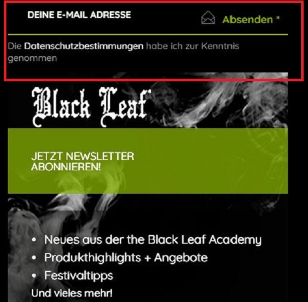 Für das Abonnieren des Newsletters bekommst du leider keinen zusätzlichen Rabatt. Wenn du regelmäßig über die neuesten Produkte, Angebote, die Black Leaf Academy und vieles mehr informiert werden willst, lohnt sich ein Abonnement aber trotzdem. Einfach deine Mailadresse in das dafür vorgesehene Feld eingeben und auf „absenden“ klicken. Schon erhältst du regelmäßige Updates aus dem Black-Leaf-Universum.