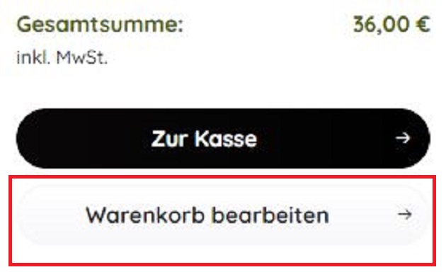 - Durch den Klick auf den Einkaufwagen öffnet sich automatisch eine Schnellübersicht deines Warenkorbs. Um den Black Leaf Gutscheincode einzulösen, klickst du jetzt auf „Warenkorb bearbeiten“.