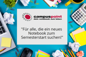 Das Sortiment von CampusPoint umfasst von Notebooks, Convertibles und Desktops über die notwendige Software bis hin zum Zubehör alles, was ihr als Azubi oder Student benötigt.