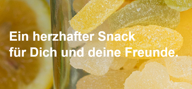 • Salzig & Würzig: z.B. Cheddarcheese Pretzels, Peanut Mix, Spicy Thai Mix