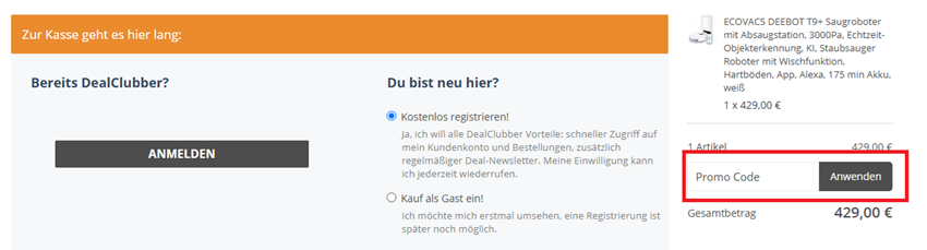 Wie löse ich einen Dealclub Gutscheincode ein?