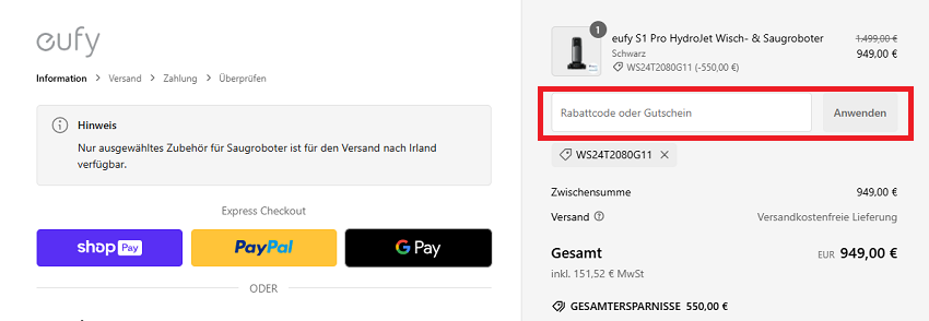 Kann ich mit einem eufylife Rabattcode versandkostenfrei bestellen?