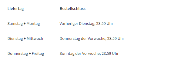 Die Lieferung von HelloFresh erfolgt innerhalb von Deutschland an jede Adresse. Löst ihr euren 120€ Rabattcode ein, entfallen die Lieferkosten für die erste Boxen. Anschließend fallen Lieferkosten von 5,99€ je Lieferung an. Außerdem gibt es einen Inselzuschlag von 10€.