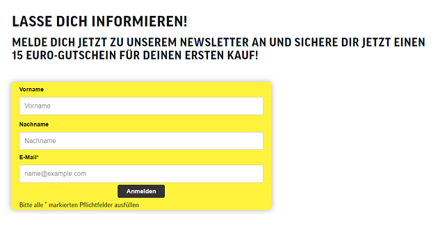 Sparfüchse & -füchsinnen aufgepasst! Abonnierst du den kostenfreien und unverbindlichen Newsletter, darfst du dich über einen 15€ Willkommensgutschein freuen, welchen du direkt bei deiner nächsten Bestellung einlösen kannst. Der Mindestbestellwert beträgt 100€. Außerdem erfährst du in Zukunft als Erste/-r von neuen Rabatten, Gutscheinen sowie Produktneuheiten und wirst durch Erfahrungsberichte und weitere informative Artikel zum echten Fahrrad Profi.