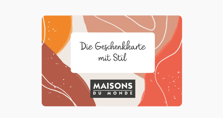 Ja, es gibt Maisons du Monde Geschenkkarten zum Erwerben. Dabei kann zwischen einer Online Geschenkkarte zum Ausdrucken oder per E-Mail und einer Geschenkkarte zum persönlichen Überreichen gewählt werden. Der Wert kann zwischen 20€ und 999€ gewählt werden.
