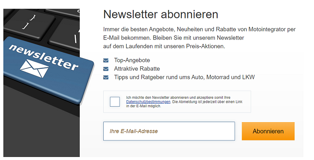 Erhalte ich einen exklusiven Motointegrator Coupon, wenn ich mich zum Newsletter anmelde?