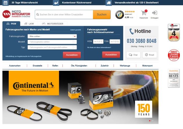 Die Kundenhotline von Motointegrator ist von Montag bis Freitag 8-18 Uhr erreichbar.
