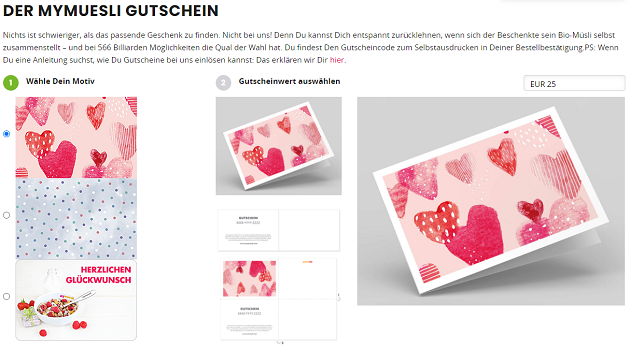 Hier ganz einfach Geschenkgutscheine von mymuesli bestellen!