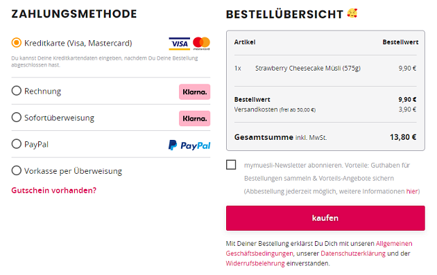 Wie löse ich einen mymuesli Gutscheincode ein?