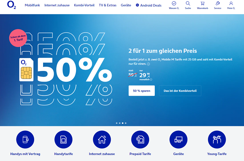 O2 Angebot im Onlineshop