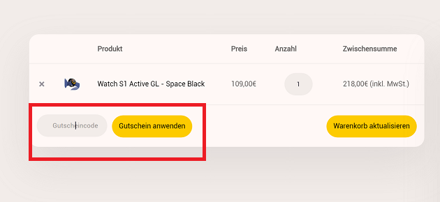 Sollte es einen separaten odiporo Gutscheincode geben, erscheint dieser ebenfalls durch den Klick auf „Gutscheincode anzeigen“. Nachdem du dich ordentlich ausgetobt hast und deinen neuen Fernseher oder die stylische neue Smartwatch in den Warenkorb gelegt hast, kannst du den Gutscheincode nun ganz einfach in das dafür vorgesehene Feld eingeben.