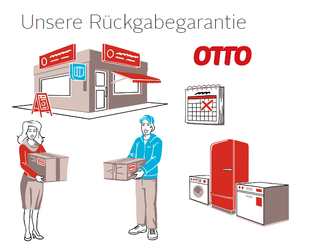 In Sachen Widerrufsrecht geht OTTO sogar über die gesetzliche Vorgabe von zwei Wochen hinaus. Bei OTTO habt ihr eine 30-tägige Rückgabegarantie – ausprobieren ohne Eile. Die Rücksendung ist in dem Zeitraum für euch völlig kostenlos. Artikel können auch nach einer Terminabsprache von zu Hause abgeholt werden.