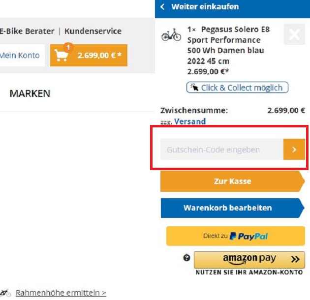 - 4. Jetzt kannst du „Zur Kasse“ und deinen Kaufvorgang abschließen. Du hast es geschafft! Dein neues Fahrrad zum Schnäppchenpreis macht sich bald auf den Weg zu dir.