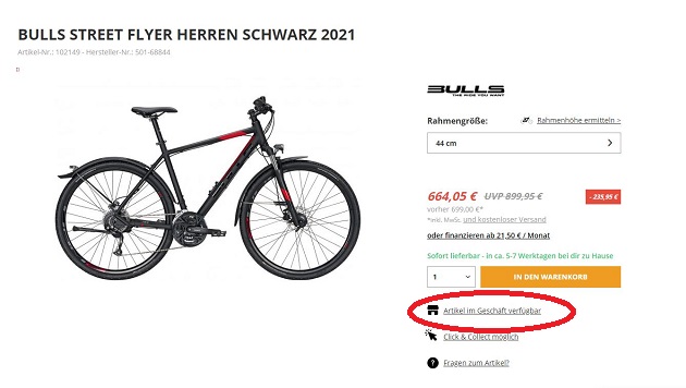 Du hast dein Wunschmodell online gefunden, willst es aber gerne nochmal probefahren bevor du es endgültig kaufst? Kein Problem. Einfach deine gewünschte Rahmengröße online auswählen und schon wird dir angezeigt, ob das Gerät endmontiert im Store in Coesfeld steht und von dir ausprobiert werden kann.