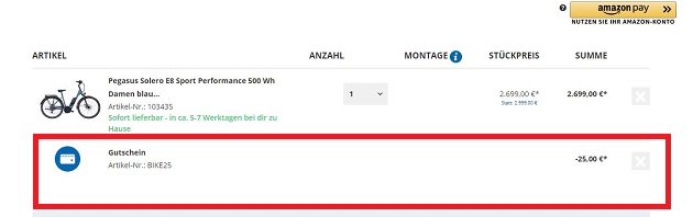 Deal des Monats: Viele Fahrräder mit bis zu...Kein Mindestbestellwert!Kein Mindestbestellwert. Gilt fĂĽr alle Kund*innen und das ...weiterlesen⌛ GĂĽltig bis 31.12.2025