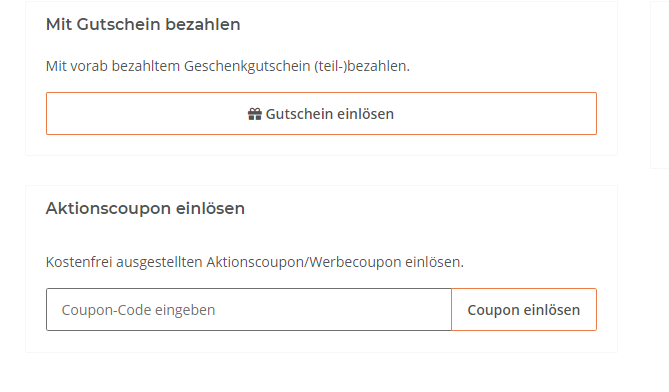 - Gehe zur Kasse, gib alle relevanten Daten ein und im letzten Schritt findest du das Feld “Aktionscoupon einlösen”.