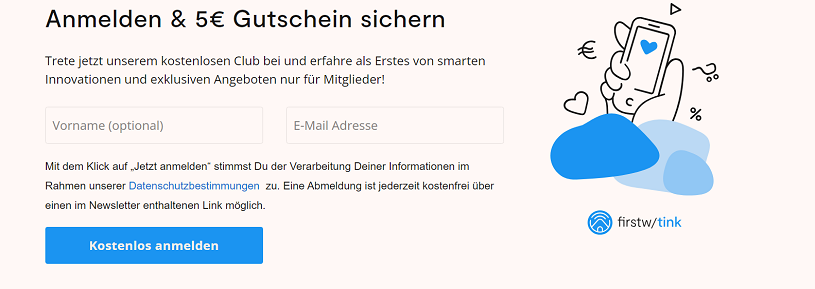 Ja, den gibt es tatsächlich. Wenn du dich mit deiner E-Mail-Adresse für den Newsletter anmeldest erhältst du einen Tink Gutschein im Wert von 5 Euro für deine nächste Bestellung. Außerdem erhältst du wöchentlich neue Gutscheine und Rabatte und erfährst stets als erstes von neuen Angeboten.