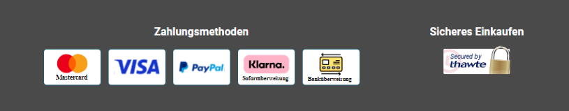 Zahlungsmethoden MasterCard, VISA, PayPal, Klarna & Banküberweisung