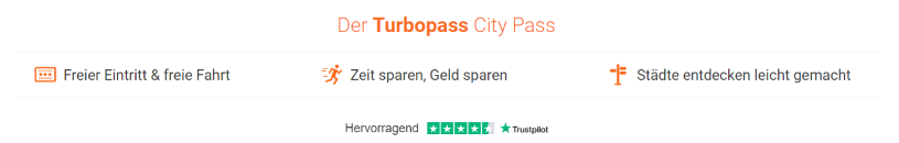 Turbopass entwickelt Citypässe, die deine Städtereise einfacher und günstiger machen. Mit Turbopass hast du freien Zutritt zu Museen, Rundfahrten, Sehenswürdigkeiten und kannst sofort Busse, Bahnen, Metro und ähnliches nutzen, sofern sie Teil des jeweiligen Angebots sind. Alle Attraktionen in deinem Citypass sind bereits bezahlt und du hast freien Eintritt und gegebenenfalls freie Nutzung des Öffentlichen Nahverkehrs inklusive. Durch den Großeinkauf bei Museen, Sehenswürdigkeiten, Rundfahrten, Touren und Tickets für Busse, Bahnen, Metro & Co. erhält Turbopass günstigere Konditionen, die sie an dich in Form von Rabatten weitergeben.