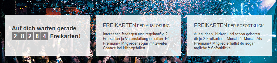 - Als Mitglied habt ihr Zugriff auf die Rubrik der Freikarten. Hier findet ihr stets aktuelle Veranstaltungen, die ihr komplett kostenlos besuchen könnt.
