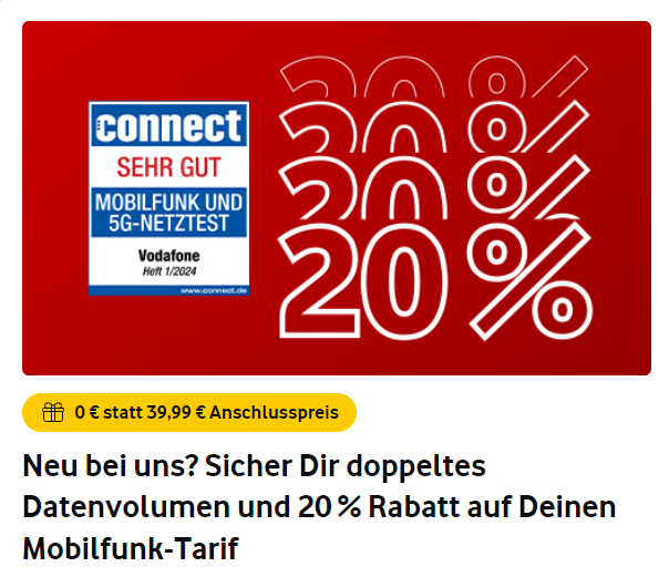 Ja, Vodafone bietet oft exklusive Vodafone Gutscheincodes speziell für Neukunden an. Diese können bei der ersten Bestellung eingelöst werden und bieten in der Regel attraktive Rabatte oder andere Vorteile. So gibt es zum Beispiel als Vodafone Neukunde 24 Monate lang 20 % Rabatt auf deinen Tarif und Doppeltes Datenvolumen.