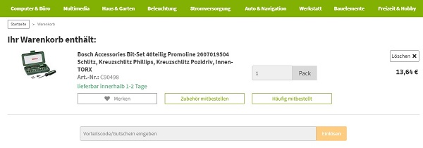 - Unterhalb der Artikel befindet sich das Feld „Vorteilscode/Gutschein eingeben“, in welches du deinen voelkner Rabattcode einfügst. Vergiss nicht auf „Einlösen“ zu klicken, damit dir der Gutscheinwert von der Bestellsumme abgezogen wird.