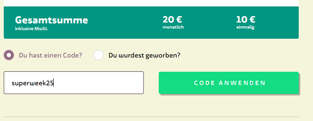 Mit dem Code wird euch die erste Tarifgrundgebühr erlassen. Nur für