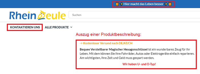 Hier ein Beispiel, wo offensichtlich ist, dass es sich um keinen deutschen Shop handeln kann: