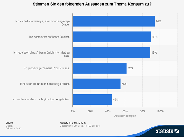 Zwar konnte die bewusst geplante Obsoleszenz bisher in keiner Untersuchung eindeutig nachgewiesen werden, dennoch zeigt eine Studie des Umweltbundesamts, dass die meisten Produkte so konzipiert werden, dass sie so lange wie nötig und nicht so lange wie möglich halten. 1/3 der Befragten sind mit der Lebensdauer der gekauften Produkte unzufrieden, 8% von elektronischen Geräten werden innerhalb von 5 Jahren auf Grund eines Defektes ausgetauscht. Grundsätzlich stimmen 94% der befragten Personen der Aussage zu, dass sie lieber weniger, dafür langlebige Produkte kaufen: