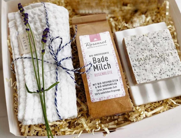 Du möchtest einen Hauch Luxus verschenken, und das ganz ohne tierische Produkte? Die vegane Beauty Box von Ultra-green ist gefüllt mit der natürliche Bademilch Rosenblüte von Rosenrot Naturkosmetik, dem Linen Tales Gesichtstuch aus Leinen, einer vegane Seife ANNE der Grete Manufaktur und einer schönen Seifenschale aus Keramik. So kann der oder die Beschenkte es sich so richtig zu gehen lassen.