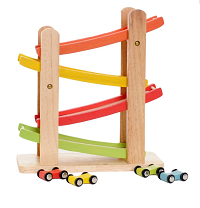 Dieses Holzspielzeug wurde aus FSC®-zertifiziertem Gummibaumholz gefertigt und mit lösungsmittelfreien Farben bemalt, sodass die Kleinen mit keinerlei Schadstoffen in Berührung kommen. Es ist für Kinder ab eineinhalb Jahren geeignet, kommt mir 4 Autos daher, schult die Hand-Augen-Koordination und garantiert stundenlangen Rennbahn-Spaß!