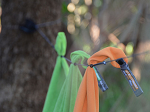 Doch wo kann man die frisch gewaschene Wäsche nun zum Trocknen aufhängen? Hier schafft die Sea to Summit Wäscheleine Abhilfe. Diese ist extra für Outdoor konzipiert, lässt sich mit Haken einfach an Bäumen befestigen und ihr benötigt keine extra Wäscheklammern. Denn mittels verschiebbarer Kunststoffperlen lässt sich die Wäsche aufhängen, ohne dass man diese verlieren kann. Diese ist 3,5 Meter lang, kommt in einem kompakten Beutel daher und kann auch für andere Zwecke beim Campen verwendet werden.