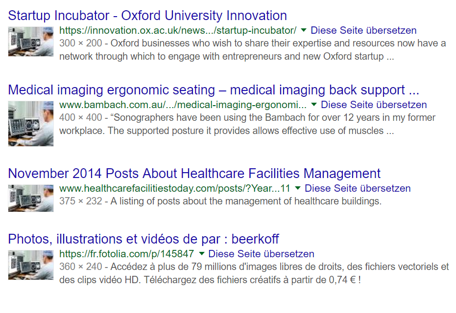 Nicht nur ist der Text extrem hölzern und offensichtlich nicht von einem echten Kunden verfasst, mit der Google Bildersuche findet man auch schnell heraus, dass dieser „zufriedene Kunde” auf Hunderten von Websites auftaucht.