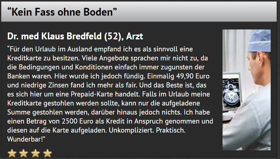 Das Problem an dieser Methode ist offensichtlich, dass man Testimonials manipulieren kann. Jeder kennt diese Werbungen, wo offensichtliche Amateurschauspieler irgendein Produkt anpreisen – und im Internet ist die Methode mittlerweile gang und gebe. Wir haben als Beispiel mal ein paar Websites von Kreditvermittlern herangezogen, die versuchen, sich durch das Testimonials System einen seriösen Anstrich zu verpassen.