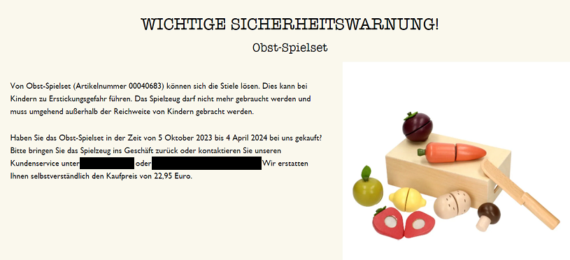 - Ist gekaufte Ware von Rücknahmeaktion betroffen, Artikel nicht mehr benutzen, entsorgen oder zurückbringen
