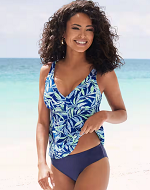 Der klassische Bikini ist dir zu freizügig, aber auf einen Badeanzug hast du auch keine Lust? Wie wäre es denn stattdessen mit einem Tankini? Der Zweiteiler besteht aus einem längeren Oberteil, was nicht nur die Brust bedeckt, sondern auch den Bauch, und einer klassischen Bikinihose. Besonders schick finden wir dieses Modell von Vivance.