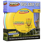 Discgolf ist entfernt mit Golf verwandt, da auch hier versucht wird über einen Kurs die Frisbee zu einem Zielpunkt, nämlich einem Frisbee Korb, zu befördern. Hierfür stehen in manchen Parks Anlagen bereit, aber man kann sich seinen Frisbeekurs auch in Miniaturform im Garten anlegen. In diesem Starter-Set ist alles enthalten, um mit Discgolf durchstarten zu können-