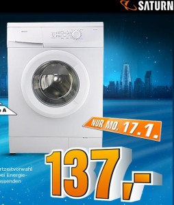 Der Preis für diese kleine WASH50-Waschmaschine von MDA ist es auf jeden Fall: Nur 137€ verlangt Saturn an diesem Montag, den 17.01., für den kleinen Wasch- und Schleuderautomaten!